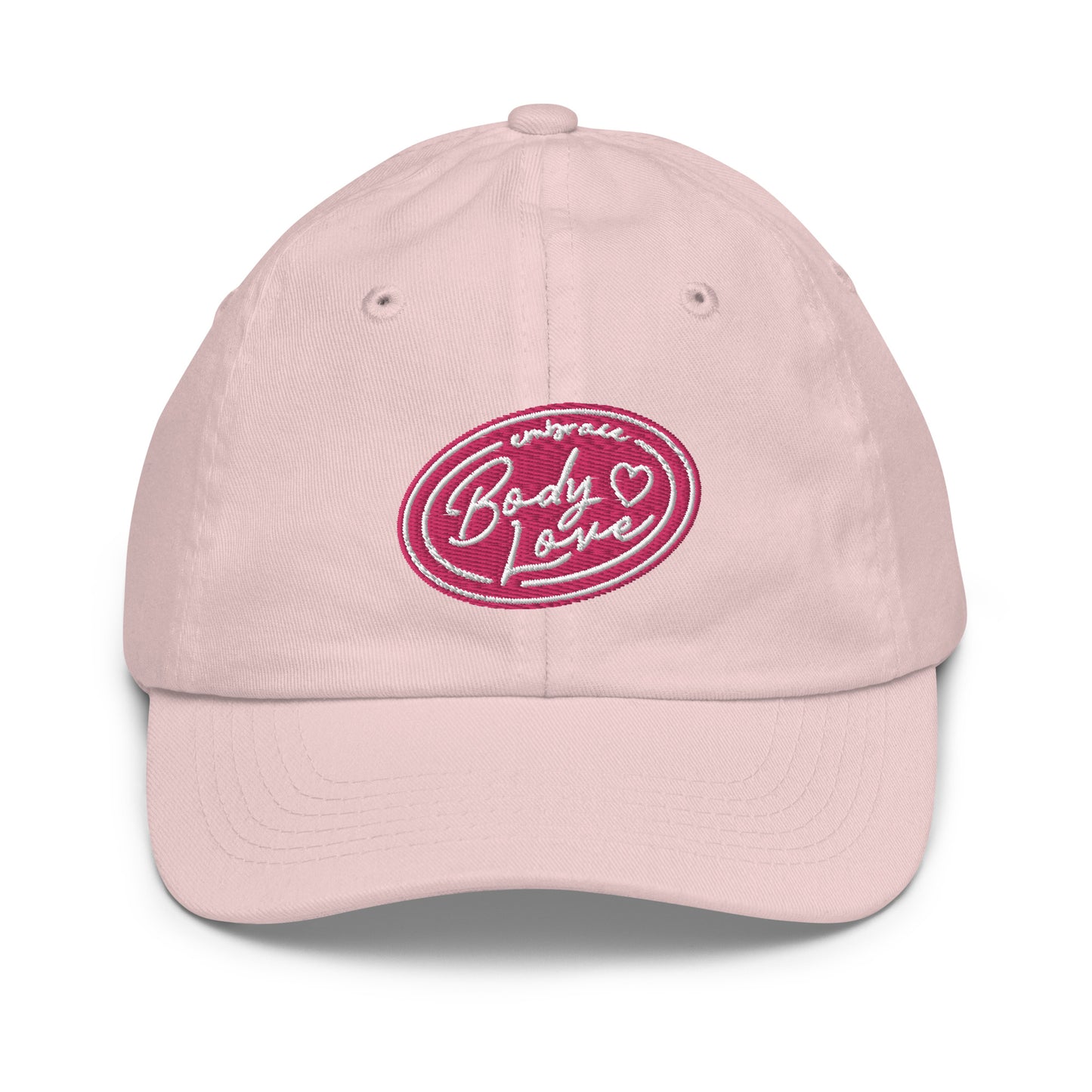 Embrace Body Love Logo, Youth baseball cap/hat- Pink/White Logo