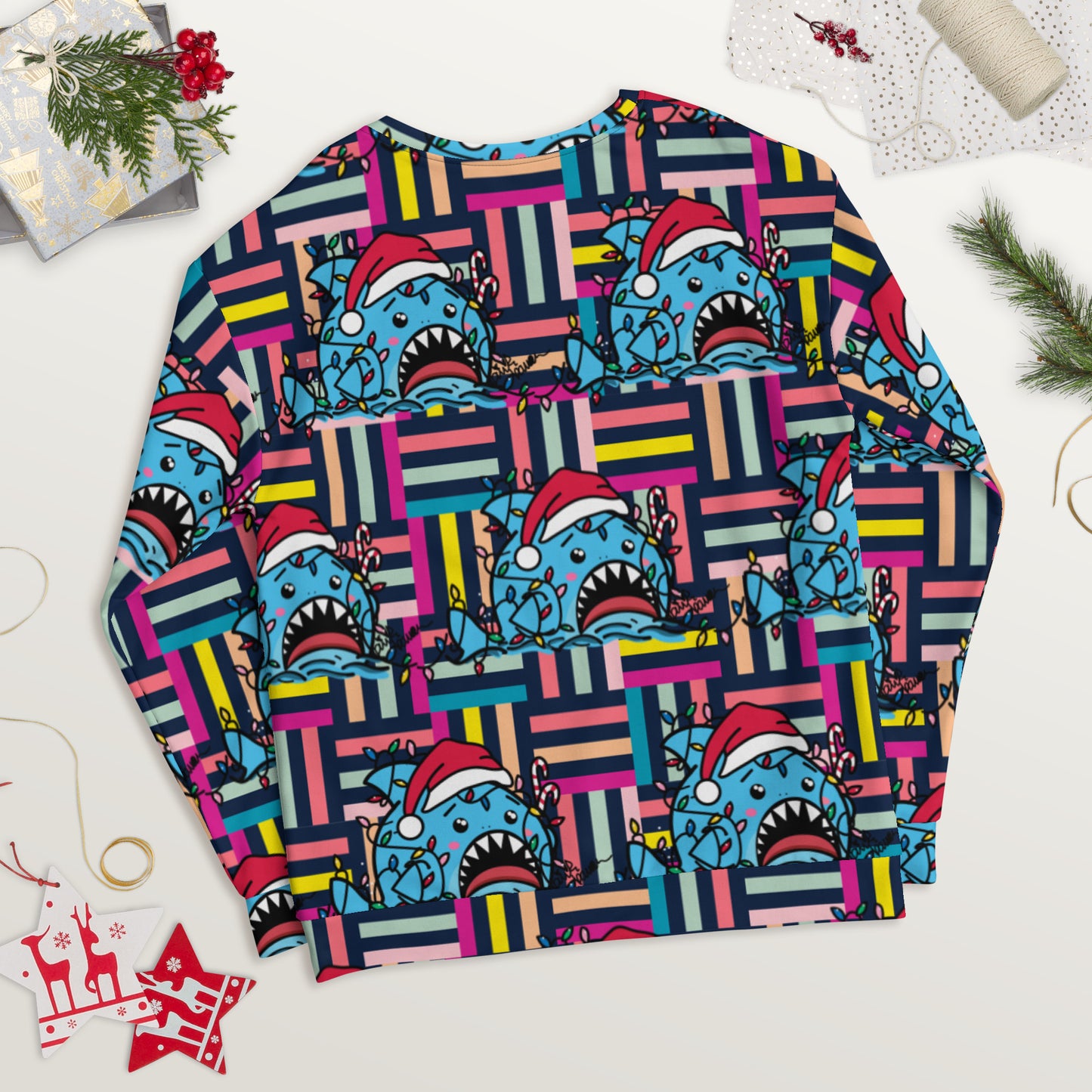 Holiday Sharks Ugly Christmas Sweater- Let There Be Lights (Genderless Sweatshirt)